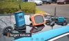 The screen displays the current vehicle speed, the speed of the other VBOX (Target), the time to collision between the two, as well as separation range, longitudinal range and lateral range calculations between the vehicles. The calculated vehicle separation data is logged to an inserted SD card, and also transmitted from the VBOX, via CAN.