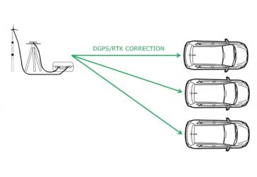 Senden und Empfangen von Differentialkorrekturinformationen (DGPS) von einer RACELOGIC-Basisstation zur lokalen Positionskorrektur.