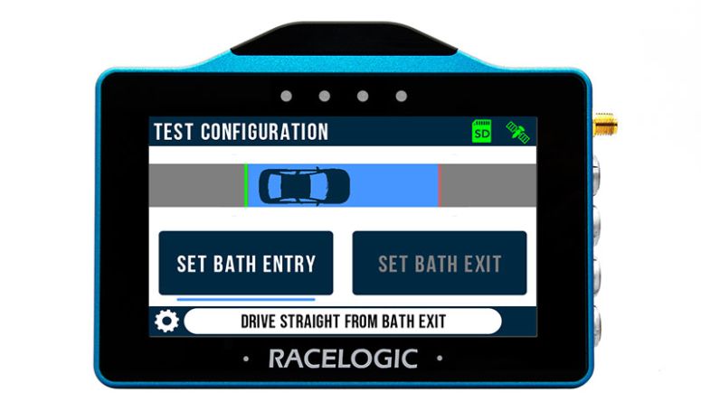 Drive through the bath at increasing speeds, maintaining a consistent steering angle with correct entry speeds defined by the VBOX Touch LEDs. - Active Test Guidance