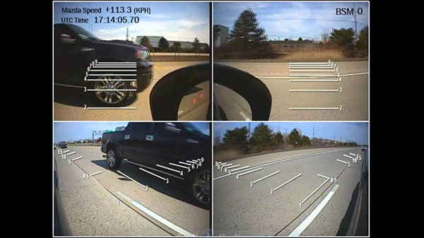 See the exact moment that a vehicle crosses the line when validating the accuracy of Lane Departure Warning or Blind Sport Detection systems, with up to four cameras. VBOX Video data loggers are also ideal for Park Assist testing, providing a visual reference to the kerb.