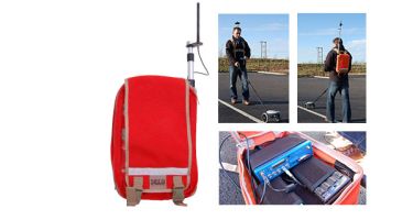 A VBOX survey trolley is required to map the curved lane edges of a test track to a high accuracy. The logged files can then be used as a reference lane in the VBOX 4, either live or in post-processing using the Lane Departure post-processing software. The survey trolley comes with a line mapping rover wheel, a custom rucksack, a radio antenna and a battery pack.