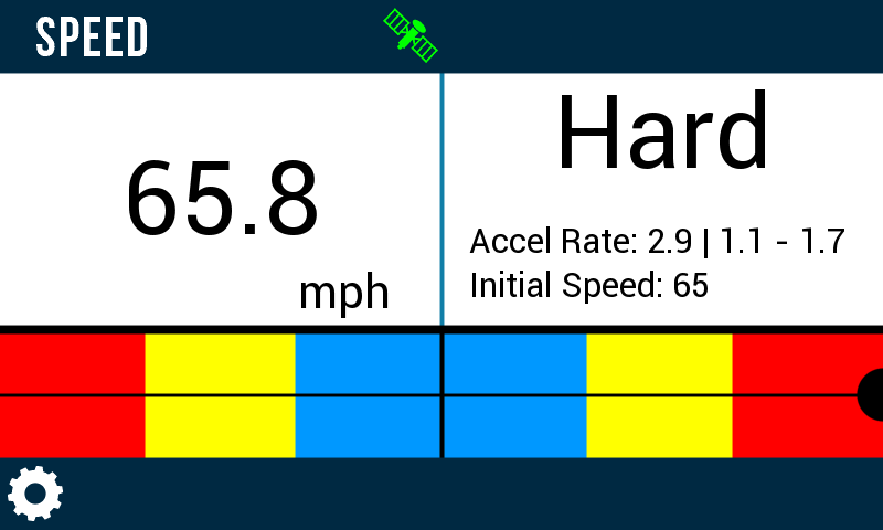 This app can be used to guide a test driver to accelerate or decelerate at specified rates based on their speed. The acceleration classifications can be adjusted easily by modifying a configuration file installed on the SD Card.