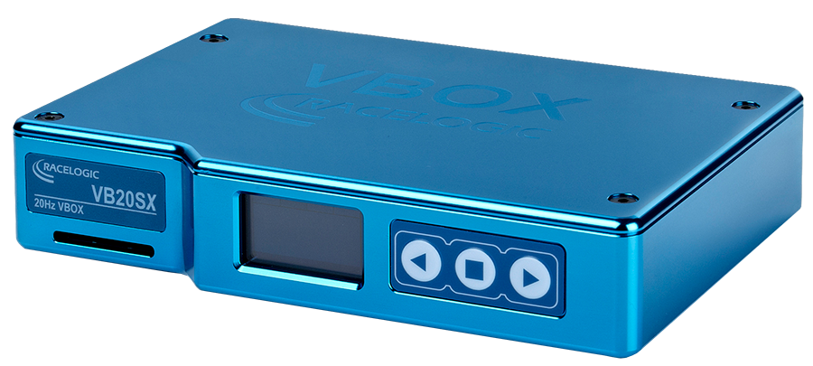 VBOX IISX protokolliert mit einer Rate von 20 Hz auf SD-Karte, verfügt über ein integriertes Display, Bremsauslösereingang, CAN-Schnittstelle sowie zwei analoge und digitale Ausgänge.