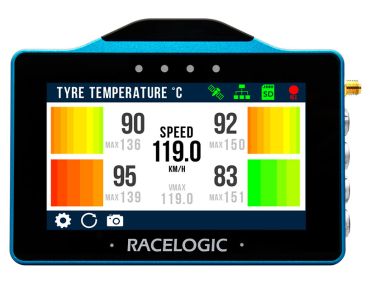 In combination with four infrared temperature sensors, you can log tyre temperatures with a VBOX Touch. When loaded with the Tyre Temperature Monitoring App, VBOX Touch will display tyre heat maps, live and maximum temperature values for up to four tyres in real-time.