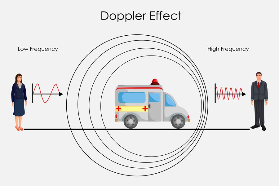 The Doppler effect (for sound) is the increase (or decrease) in a sound wave frequency as the sound of an object moves away (or towards) an observer.