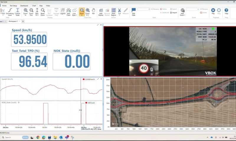 For in-depth analysis and post-processing review of event markers, the VBOX Touch can synchronise with a VBOX HD2 unit, linking video footage with data events. The CAN output can also be used to add a graphic overlay to display the key data metrics over the footage. This integration provides you with comprehensive visual feedback on SLIF and ISA accuracy, particularly useful for pinpointing and reviewing instances where signage was misread or unrecognized.