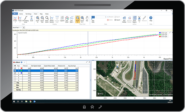 Our compact and portable data loggers make it easy to test a vehicle's acceleration over a set distance or time, such as 0-60 mph or over a quarter mile, with real-time feedback.