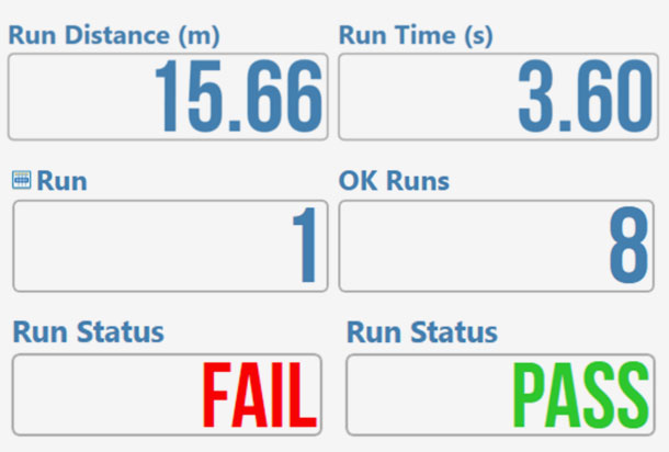 If you add a Pass/Fail criteria, the 'Run Status' gauge will show you if a vehicle has passed or failed based on these criteria, in real-time.