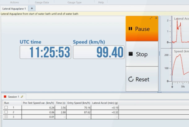 VBOX Test Suite is our free data analysis software that is available to all VBOX users. It comes with three dedicated Tyre Testing plugins, making it easy to obtain results for both longitudinal and lateral aquaplane applications, and gain a greater understanding of the characteristics and behaviour of the tyres under test.